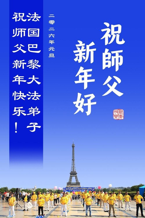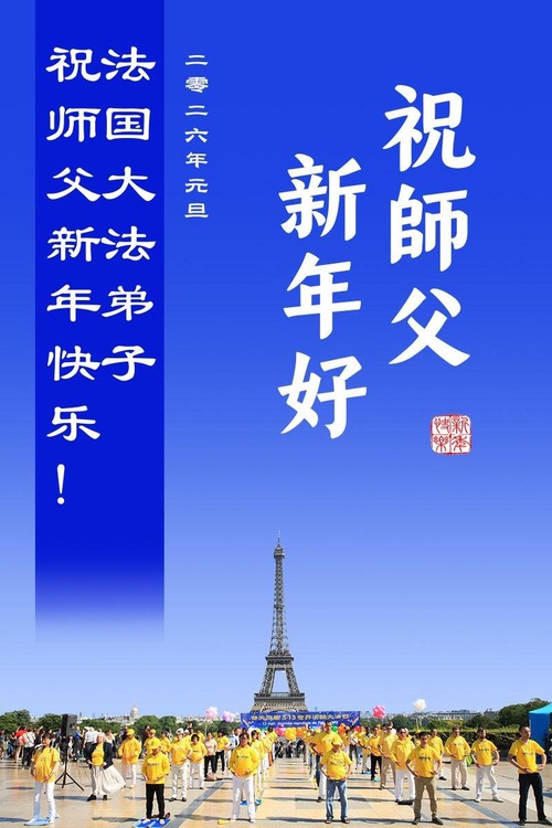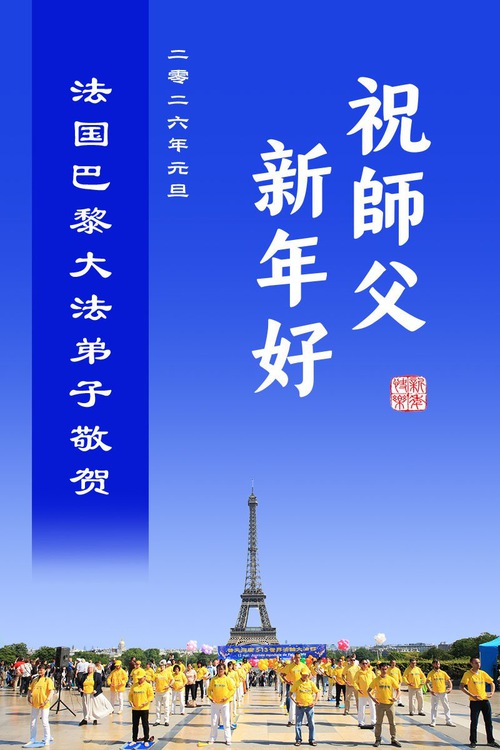 Практикующие из группы изучения Фа в Париже во Франции поздравляют уважаемого Учителя с Новым годом!