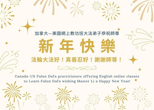 Практикующие Фалунь Дафа, которые проводят онлайн-курсы по изучению Фалунь Дафа в Канаде и США, поздравляют уважаемого Учителя с Новым годом!