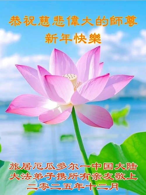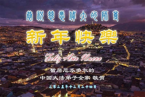 Практикующий Фалунь Дафа из Китая, а также его родственники и друзья, проживающие в Эквадоре, поздравляют милосердного Учителя с Новым годом!