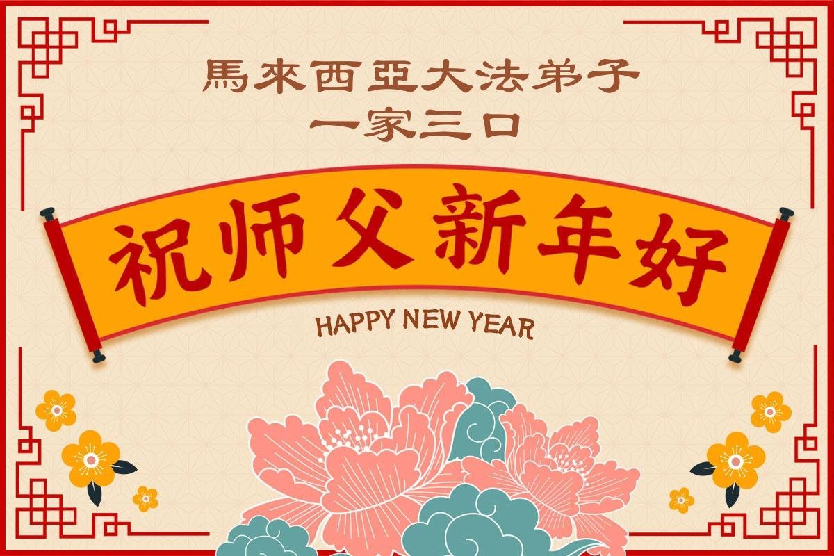 Трое практикующих из одной семьи в Малайзии поздравляют уважаемого Учителя с Новым годом!