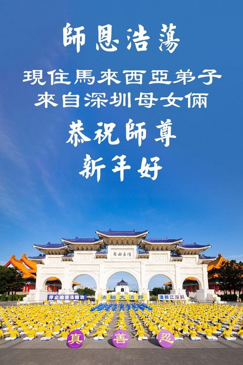 Мать и дочь, практикующие из города Шэньчжэня в Китае, проживающие в Малайзии, поздравляют уважаемого Учителя с Новым годом!