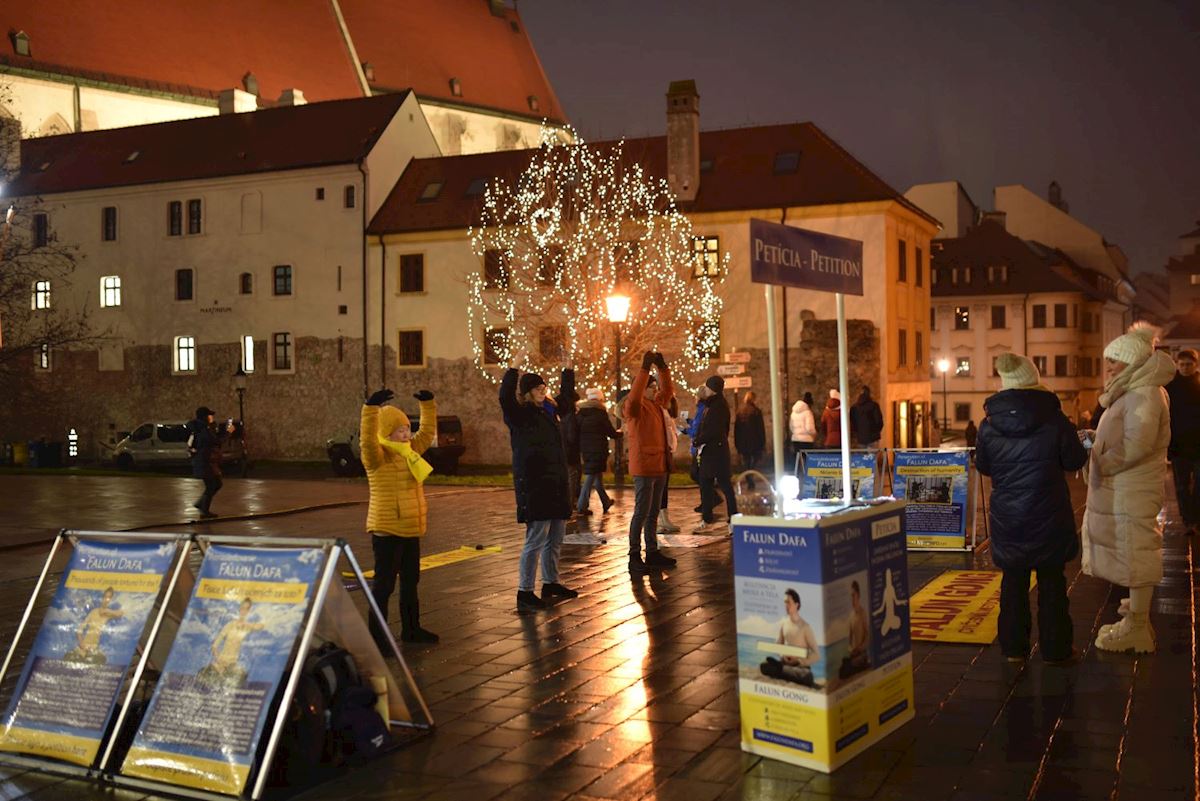 (Minghui.org) С 29 ноября по 21 декабря 2025 года практикующие Фалуньгун в Словакии проводили мероприятия по выходным дням в городах Нитре и Братиславе, чтобы рассказать общественности о нарушениях прав человека, связанных с преследованием Фалуньгун (Фалунь Дафа) в Китае.