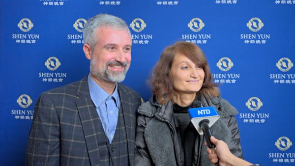 Марко Каррель, советник из Валле-д'Аоста, и его жена посетили представление Shen Yun в Турине 3 января 2026 года.