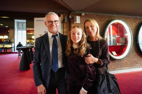 Этторе Мантелли, мэр Сан-Раффаэле Чимена, и его семья посетили представление Shen Yun в Турине 31 декабря 2025 года.