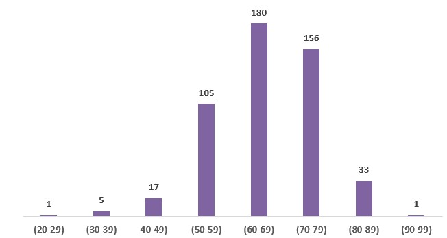 Возраст 498 осуждённых практикующих Фалунь Дафа, известный на момент вынесения приговора