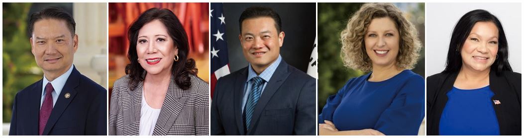 Слева направо: член Законодательного собрания штата Калифорния Три Та (70-й избирательный округ); председатель совета округа Лос-Анджелеса Хильда Солис; член Законодательного собрания штата Калифорния Филип Чен (59-й избирательный округ); член Законодательного собрания штата Калифорния Пилар Скьяво (40-й избирательный округ); член Законодательного собрания штата Калифорния Летисия Кастильо (58-й избирательный округ)