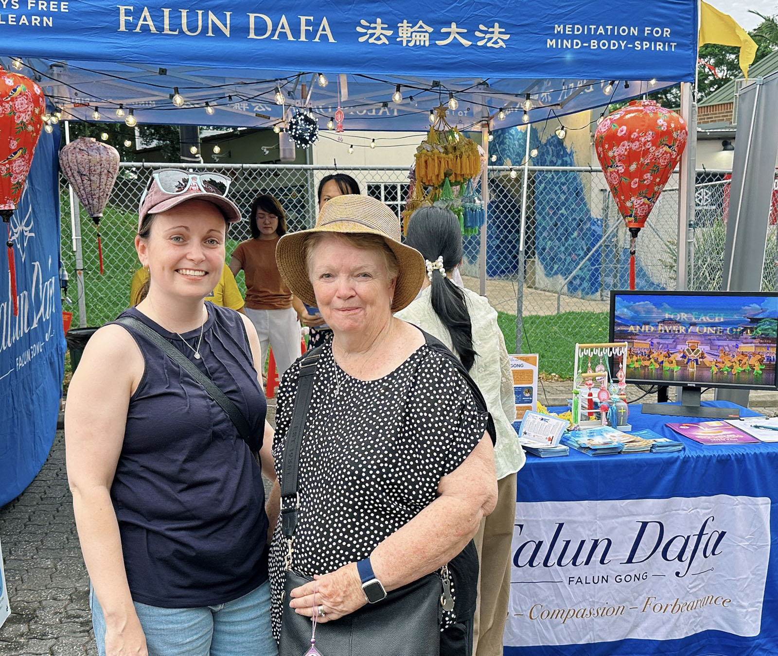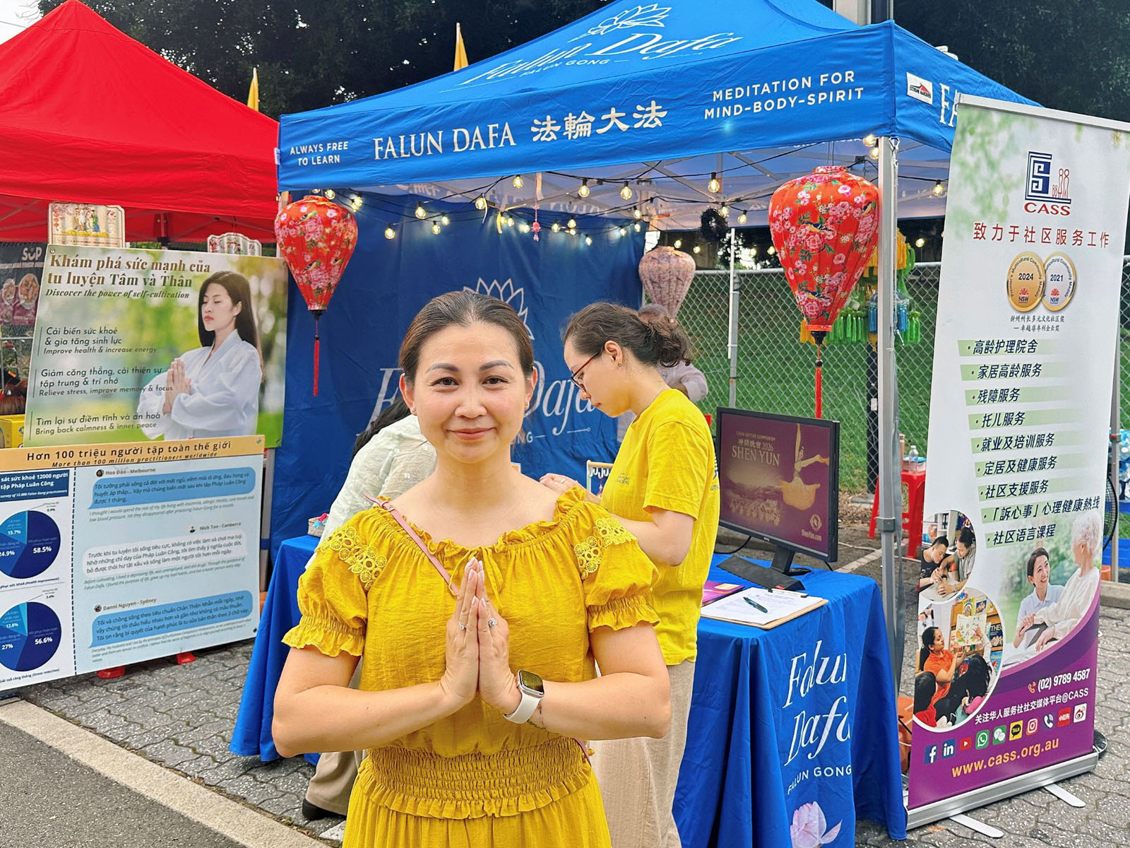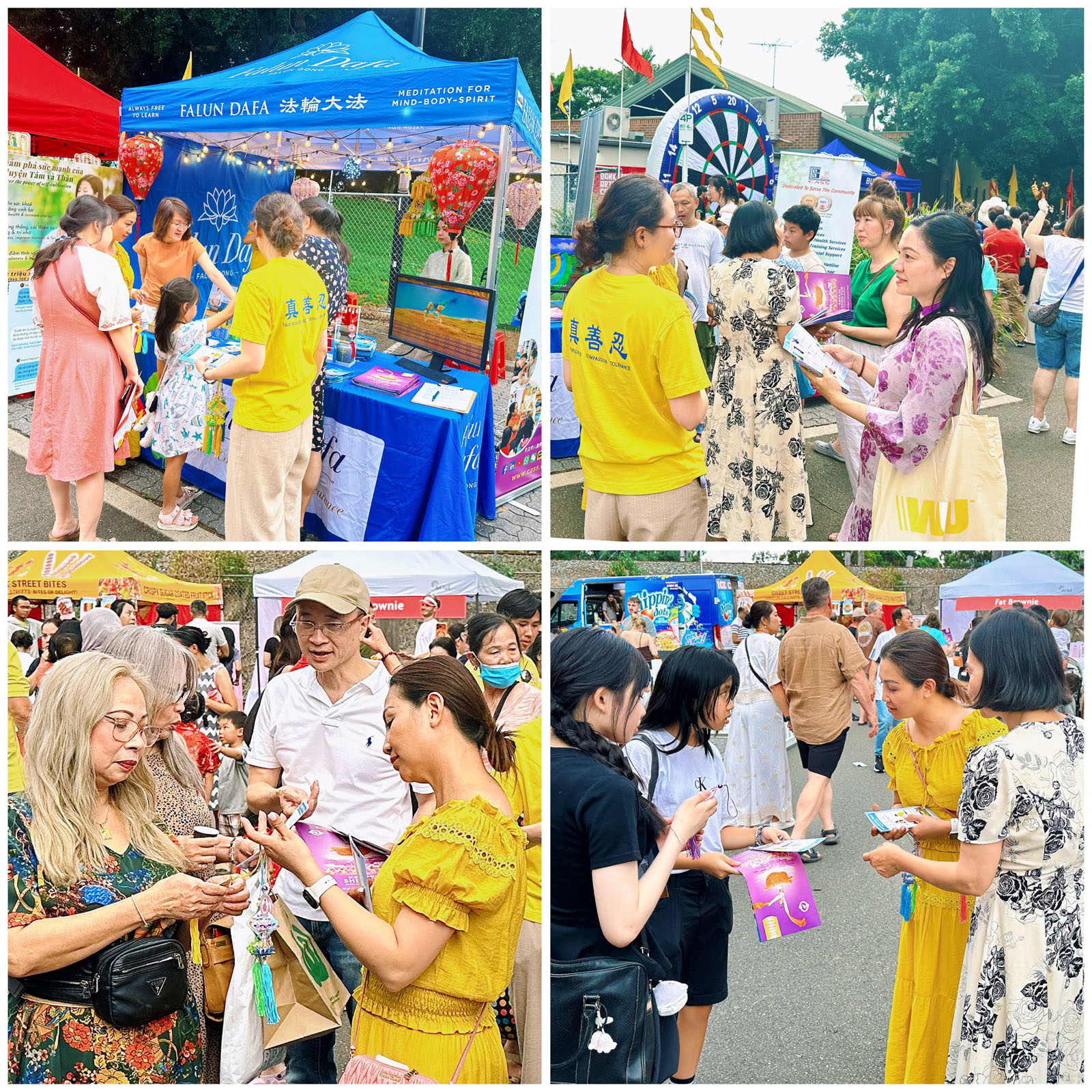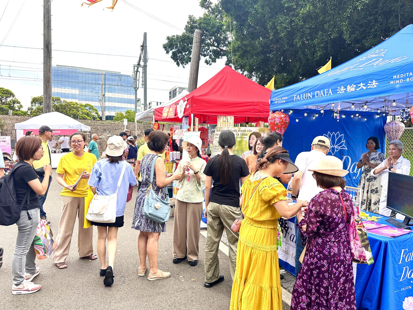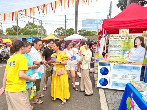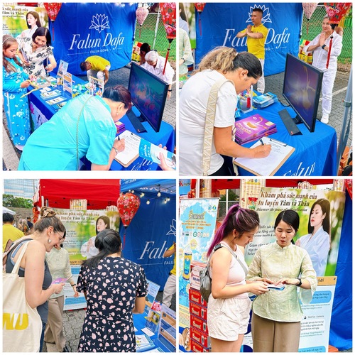 Многие люди останавливались возле палатки Фалунь Дафа, чтобы посмотреть на выполняемые практикующими упражнения и прочитать информацию, размещённую на плакатах. Услышав о принципах «Истина, Доброта, Терпение» и пользе Фалунь Дафа, некоторые прохожие выразили желание научиться этой практике.