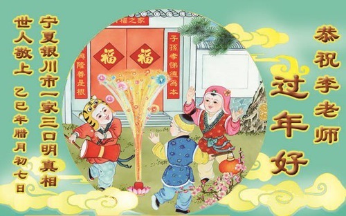 Эти чиновники говорят, что повторение фраз: «Фалунь Дафа несёт добро» и «Истина, Доброта, Терпение – праведные принципы» помогает им оставаться в безопасности. «Спасибо, Учитель Ли, за то, что простили нас, поскольку некоторые из нас в прошлом совершали ошибки и участвовали в преследовании. Нам повезло узнать правду, и мы желаем Учителю Ли счастливого китайского Нового года!» – написали они.