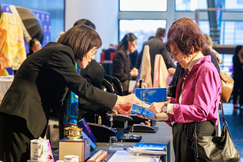 Люди, пришедшие на представление Shen Yun в Немецкой опере в Берлине 9 февраля 2026 года, рассматривают Книги Фалунь Дафа (фото: The Epoch Times)
