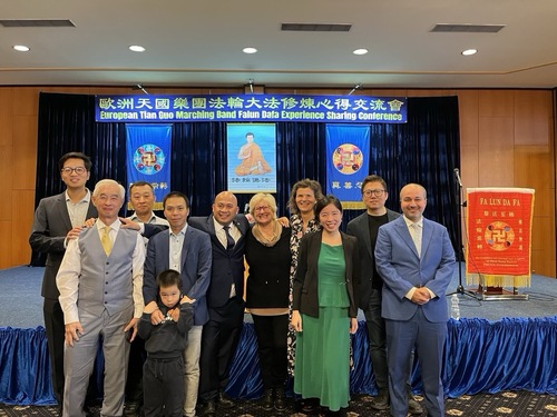 Сильке (в заднем ряду, вторая справа) и другие участники Конференции Фа по обмену опытом, организованной Европейским оркестром Тянь Го в сентябре 2025 года. Конференция состоялась после мероприятия в Гётеборге (Швеция), посвящённого 30-летию проповедования Фалунь Дафа Учителем Ли Хунчжи в Швеции