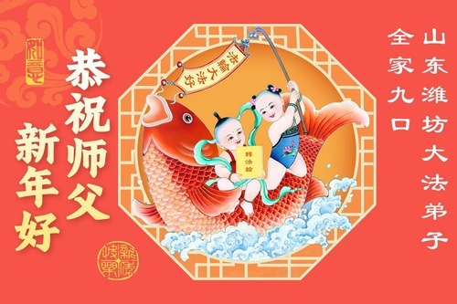 Практикующие Фалунь Дафа из провинции Шаньдун желают уважаемому Учителю счастливого китайского Нового года!