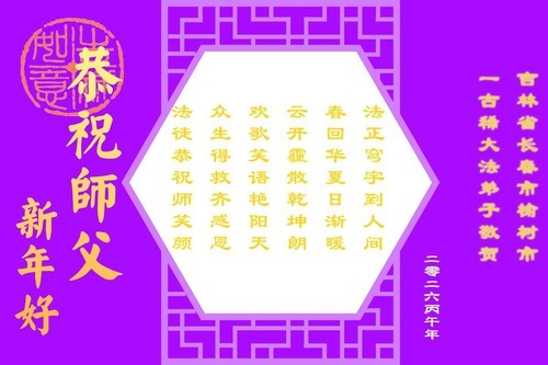 Практикующие Фалунь Дафа из города Чанчунь желают уважаемому Учителю Ли Хунчжи счастливого Нового года (107 поздравлений)