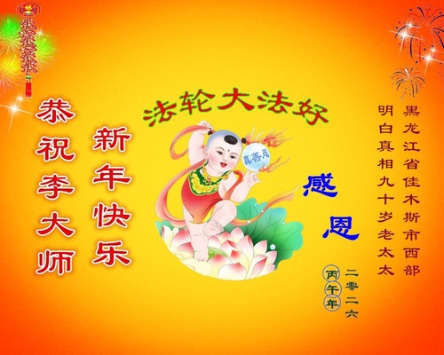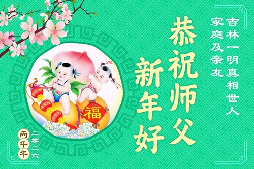 (Minghui.org) В связи с празднованием китайского Нового года, который в этом году отмечается 17 февраля, многие люди в Китае направили сердечные поздравления основателю Фалунь Дафа, Учителю Ли Хунчжи. Они выразили глубокую благодарность Учителю за дарованное им благословение, крепкое здоровье и благополучную жизнь.
