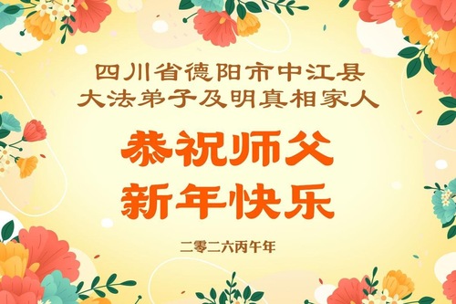 Среди сторонников Фалунь Дафа, приславших поздравления, 20 человек из уезда Сюйюн, четыре человека и семья из города Наньчуна, три человека из города Чэнду, двое из города Паньчжихуа, 87-летняя женщина и её 84-летний брат из уезда Сантай, а также по одному человеку из уезда Чжунцзян и города Суйнина.
