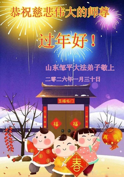 Практикующие Фалунь Дафа из провинции Шаньдун желают уважаемому Учителю счастливого китайского Нового года!