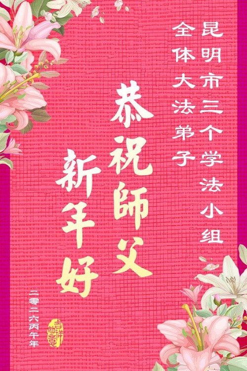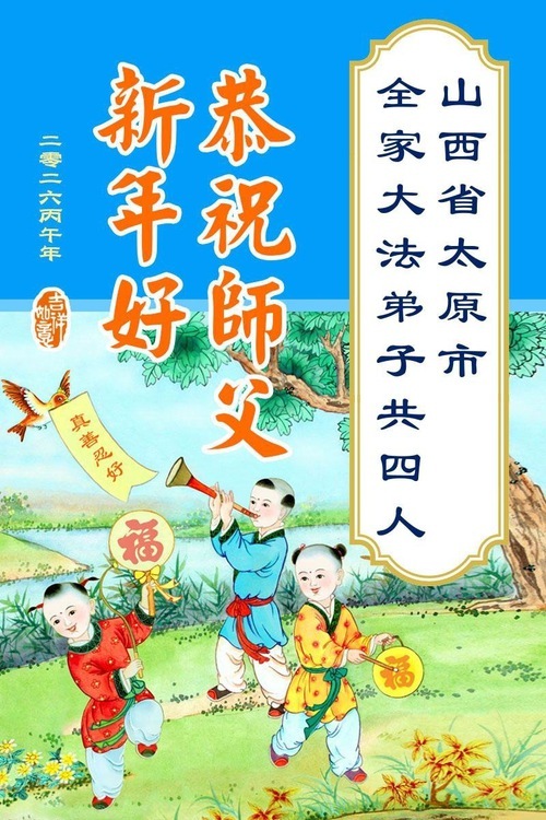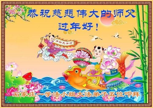 Четверо практикующих из одной семьи, проживающие в городе Даляне в провинции Ляонин, написали: «Китайская компартия преследует Фалунь Дафа уже 27 лет. Мы вчетвером создали у себя дома пункт по производству информационных материалов, которые раздаём людям, чтобы они могли узнать правду о Дафа. По случаю китайского Нового года мы хотим сказать Учителю, что будем продолжать усердно совершенствоваться и помогать спасать людей. Спасибо, Учитель Ли! Желаем Вам счастливого китайского Нового года!»