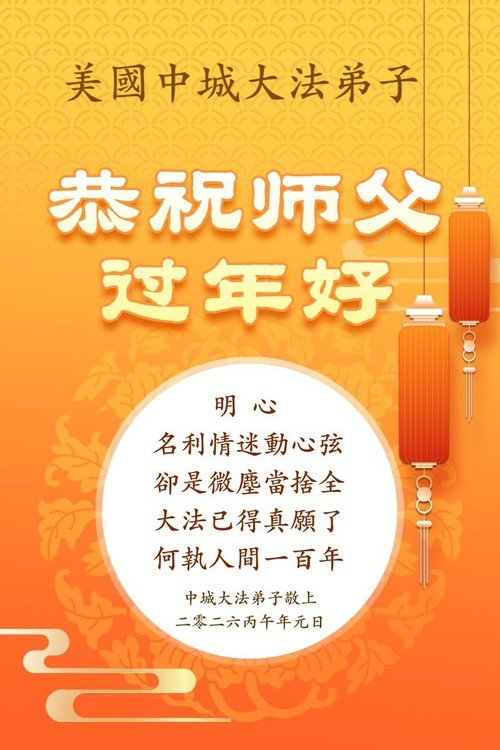 Родственник практикующего Фалунь Дафа, проживающий в США, поздравляет Учителя с Новым годом