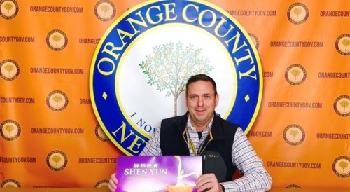 Глава администрации округа Ориндж Стивен Нойхаус сказал в видеообращении: «Для меня большая честь вручить благодарственное письмо в честь моих друзей, которые занимаются театром Shen Yun уже 20 лет. Shen Yun очень важен для округа Ориндж, потому что главный офис компании находится в Драгон-Спрингс. Они прошли путь от одной труппы до восьми, чтобы рассказывать свои прекрасные истории по всему миру. Сейчас они дают более 800 представлений в год. Я видел их много раз и встречался с артистами. Они рассказывают замечательные истории о Китае, каким он был до коммунизма. Мы, как округ Ориндж, очень гордимся тем, что называем их своими соседями, потому что они считают наш округ своим домом. Поздравляю! Пусть они ещё 20 лет и больше продолжают вдохновлять людей по всему замечательному миру, который мы разделяем. Спасибо!»