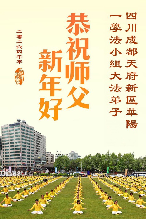 Практикующие Фалунь Дафа из города Чэнду желают уважаемому Учителю Ли Хунчжи счастливого китайского Нового года (111 поздравлений)