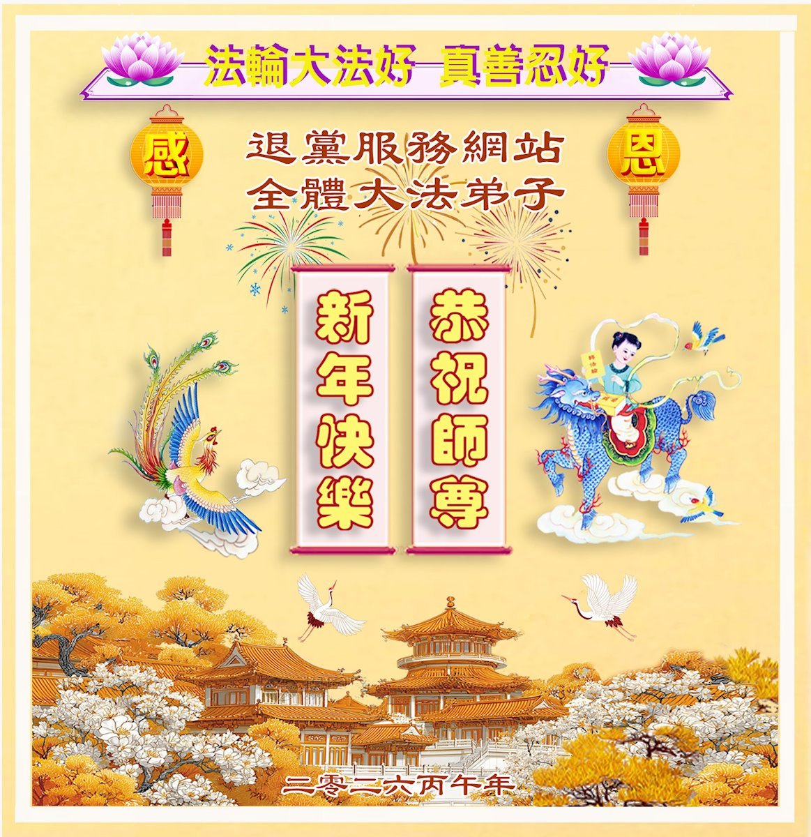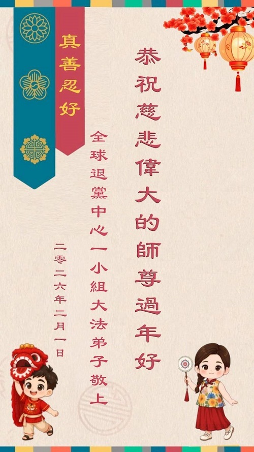(Minghui.org) В связи с празднованием китайского Нового года в 2026 году люди со всего мира присылают искренние поздравления, чтобы пожелать основателю Фалунь Дафа, Учителю Ли Хунчжи, счастливого праздника. Они также выражают глубокую благодарность Учителю за дарованное им благословение, здоровье и благополучную жизнь.