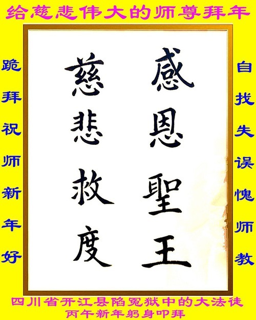 В дни празднования китайского Нового года в 2026 году практикующие, которые по-прежнему содержатся в тюрьмах, центрах заключения и центрах «промывания мозгов» в Китае, направили Учителю Ли свои наилучшие пожелания и поздравления с Новым годом и торжественно пообещали оставаться твёрдыми в своей вере и выполнять свою миссию.