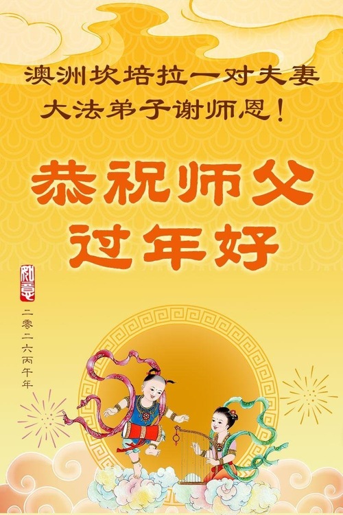 Муж и жена, практикующие Фалунь Дафа из Сиднея, поздравляют уважаемого Учителя с китайским Новым годом