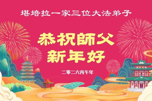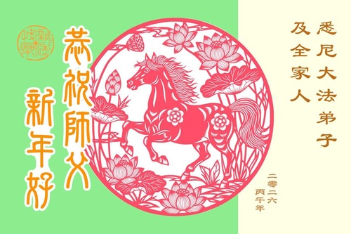 Практикующая Фалунь Дафа в Австралии и 14 членов её семьи и родственников в Китае поздравляют уважаемого Учителя с китайским Новым годом