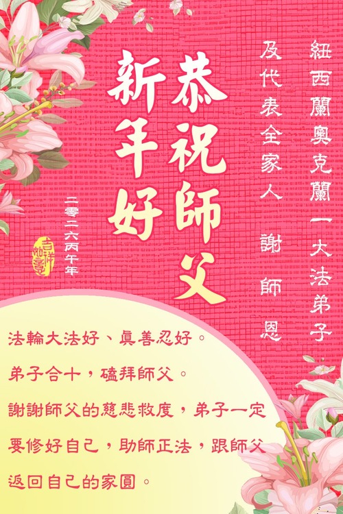 Практикующий Фалунь Дафа из Окленда в Новой Зеландии от имени своей семьи поздравляет уважаемого Учителя с китайским Новым годом