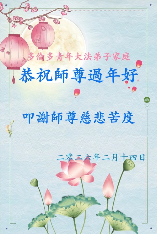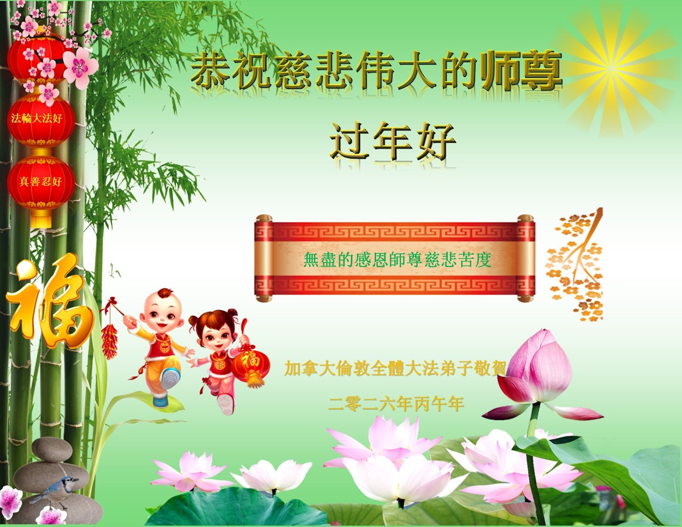 (Minghui.org) Практикующие Фалунь Дафа из Канады направили свои сердечные поздравления Учителю Ли с китайским Новым годом.