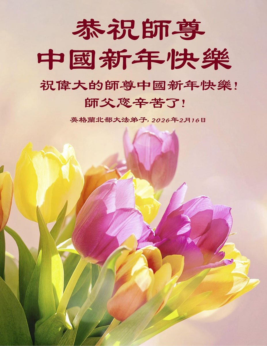 (Minghui.org) В ознаменование китайского Нового года в 2026 году практикующие Фалунь Дафа, проживающие за пределами Китая, передают самые тёплые поздравления Учителю Ли Хунчжи, основателю практики, с пожеланием счастливого праздника.