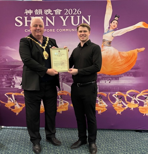 (Minghui.org) Стив Уоткинс, лорд-мэр Сток-он-Трента, посетил второе представление труппы Shen Yun Performing Arts в театре Regent днём 18 февраля 2026 года. После окончания представления он вручил Shen Yun специальное свидетельство мэра о признании выдающегося вклада компании в культурную жизнь города.
