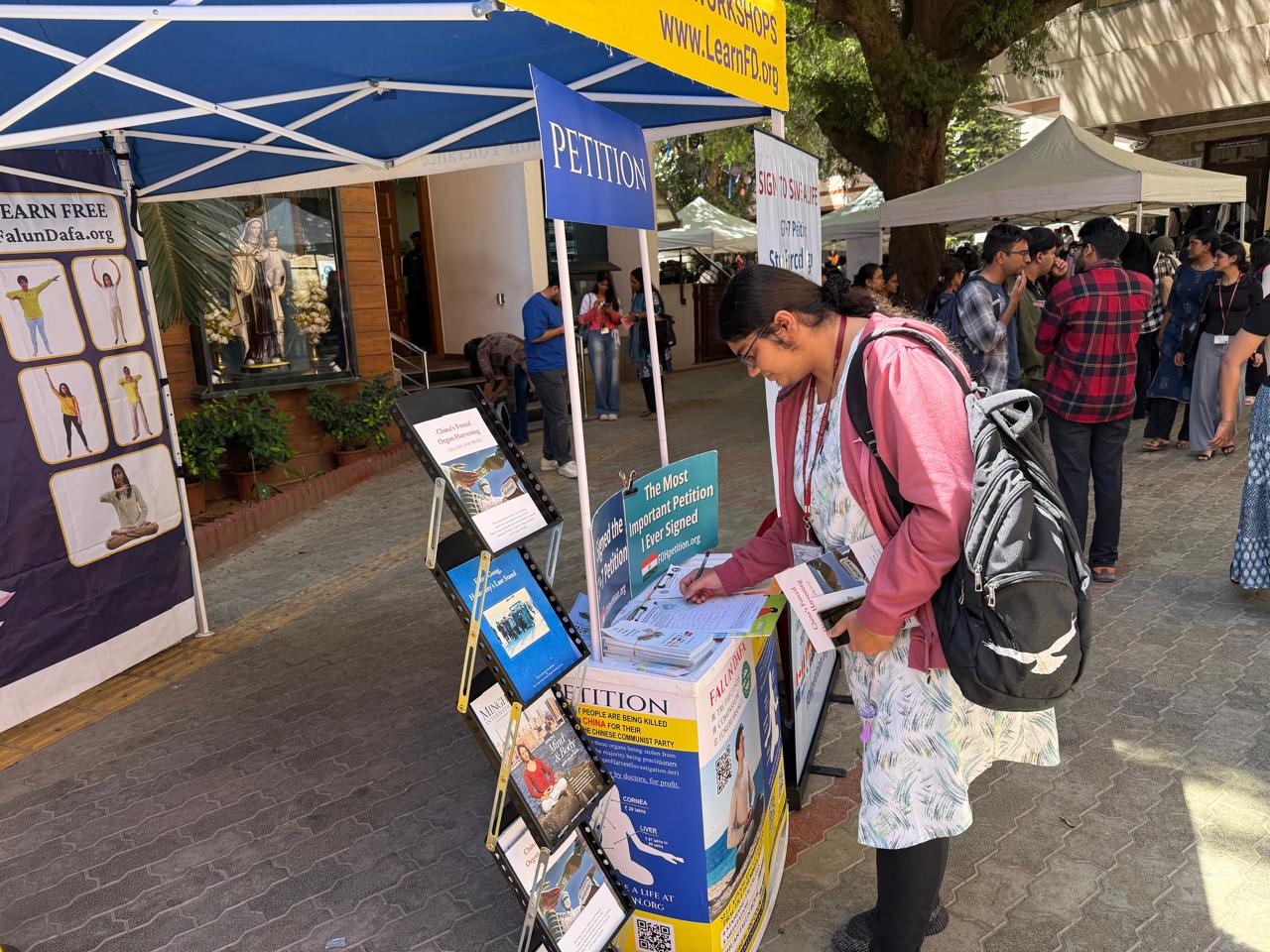 Продолжая давнюю традицию, практикующие Фалунь Дафа установили информационный стенд, чтобы познакомить студентов и преподавателей с духовной практикой Фалунь Дафа. В этом году особое внимание было уделено петиции, инициированной организацией «Врачи против насильственного извлечения органов» (DAFOH), которая призывает страны G7+7 принять меры против насильственного извлечения органов и пыток практикующих Фалунь Дафа в Китае. Инициатива на территории кампуса была направлена на информирование студентов об этом преступлении, на поддержку осознанного гражданского участия и выражение своего мнения.