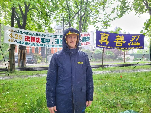 Уилфред принимает участие в мероприятии возле посольства Китая в Бельгии, посвящённом разъяснению правды о преследовании