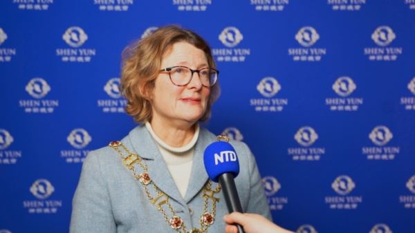 После просмотра постановки Shen Yun в Борнмуте 29 января 2026 года мэр города Джеки Эдвардс сказала: «Какое великолепное представление! Костюмы просто потрясающие.