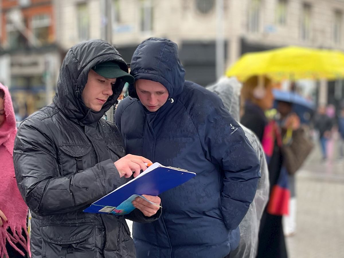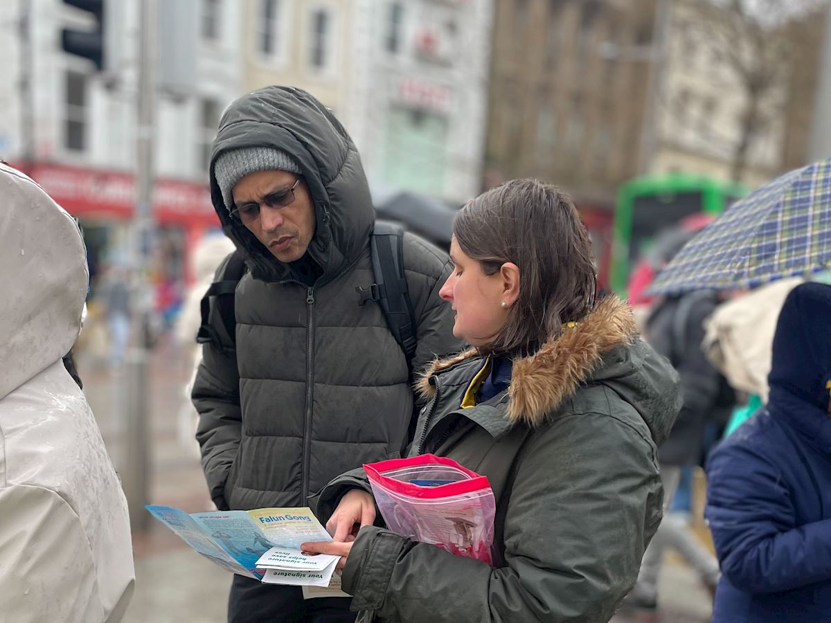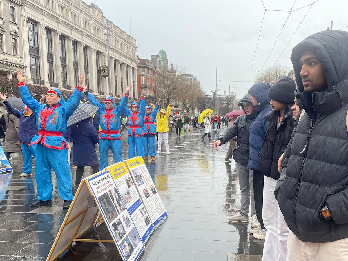 (Minghui.org) Практикующие Фалунь Дафа 21 февраля 2026 года провели мероприятия в центре Дублина. Они рассказывали местным жителям и туристам о Фалунь Дафа (Фалуньгун) и о том, как компартия Китая преследует эту духовную практику.