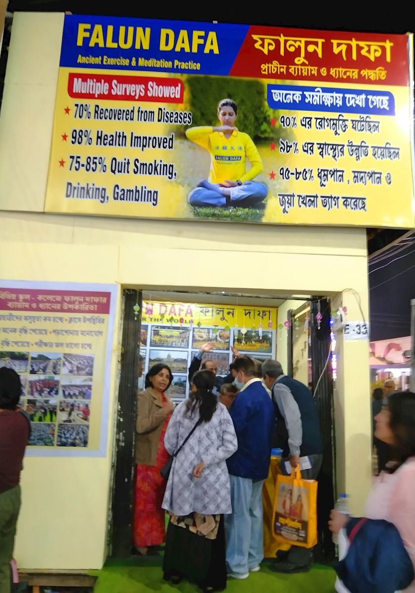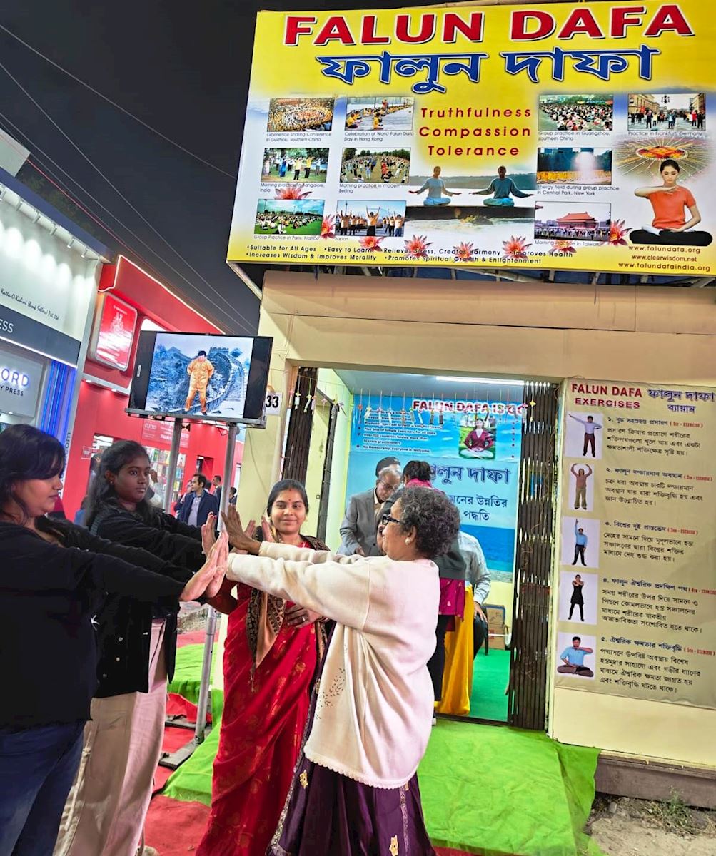 (Minghui.org) Практикующие Фалунь Дафа приняли участие в 49-й Международной книжной ярмарке, которая проходила в Калькутте с 22 января по 3 февраля 2026 года. Международная книжная ярмарка в Калькутте – крупнейшая в мире некоммерческая книжная ярмарка и крупнейшая книжная ярмарка в Азии. В этом году её посетило рекордное число людей – 3,5 миллиона человек, чему способствовала недавно построенная станция метро, расположенная недалеко от места проведения ярмарки. На ярмарке также проходит множество культурных мероприятий, связанных с книгами, таких как литературные дискуссии, презентации книг и выступления, посвящённые богатому литературному наследию Калькутты.