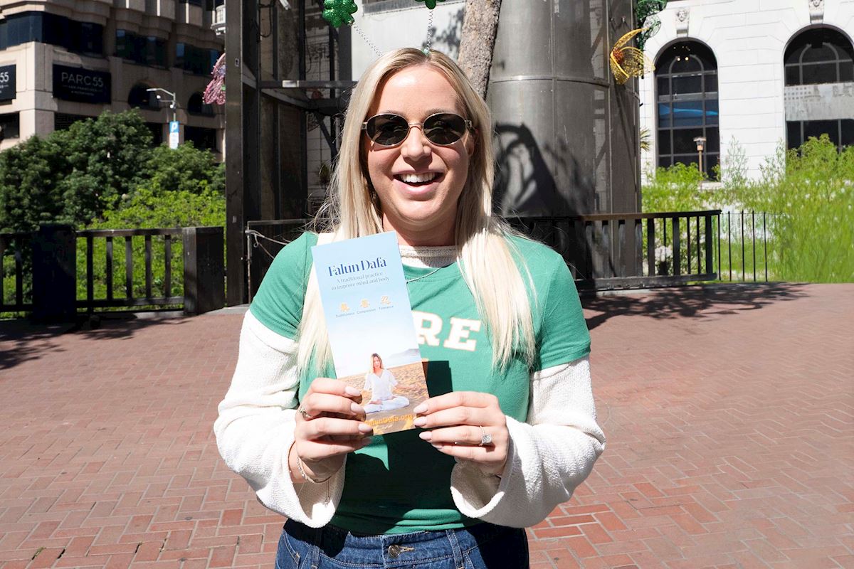 Кэролайн – ирландка по происхождению. Она сказала: «Команда последователей Фалунь Дафа замечательная, и они приносят людям радость. Истина, Доброта, Терпение – это хорошо, и это те принципы, которым должен следовать каждый».