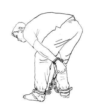 Иллюстрация пыток: наручники и кандалы, соединённые цепью
