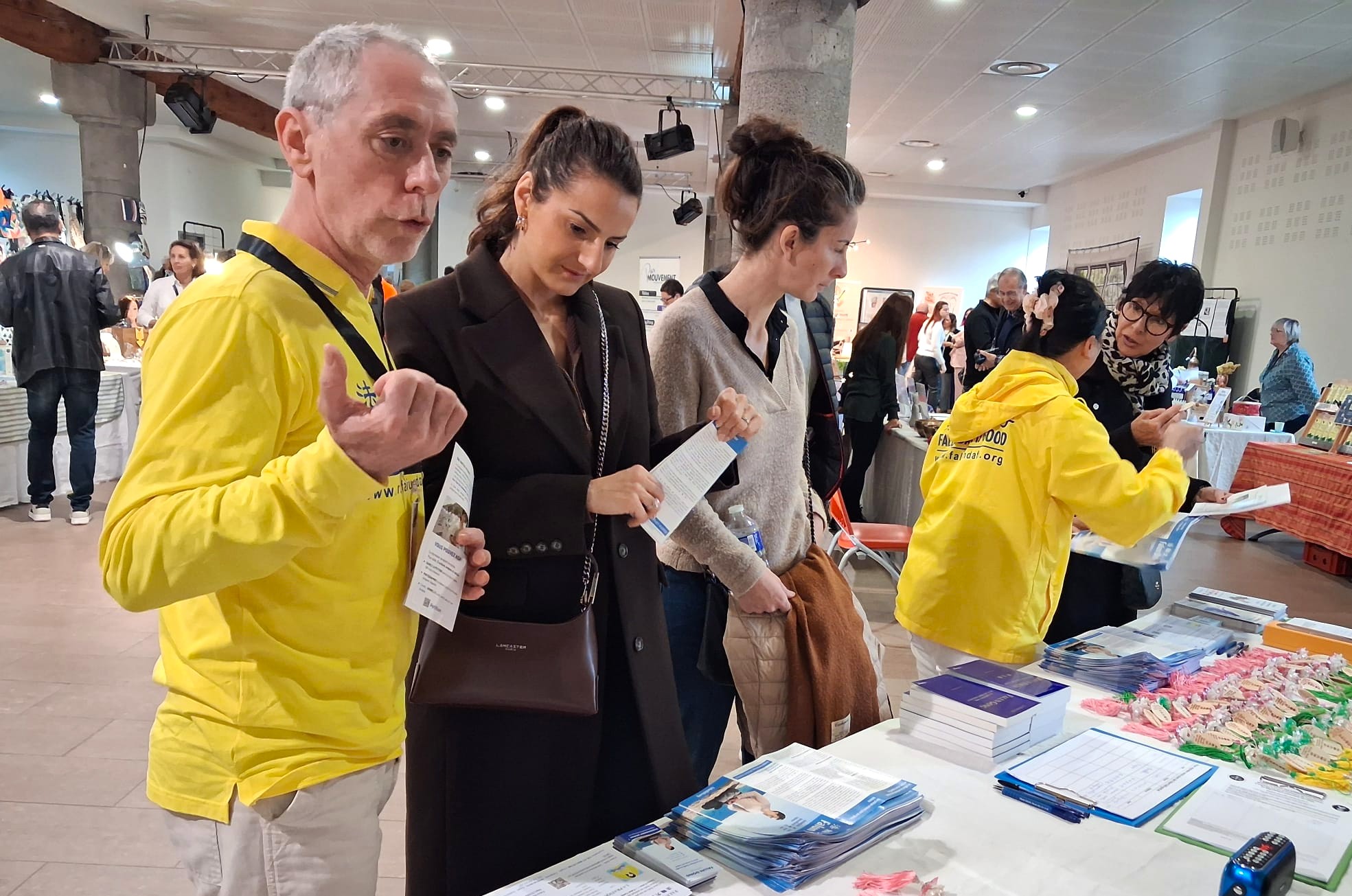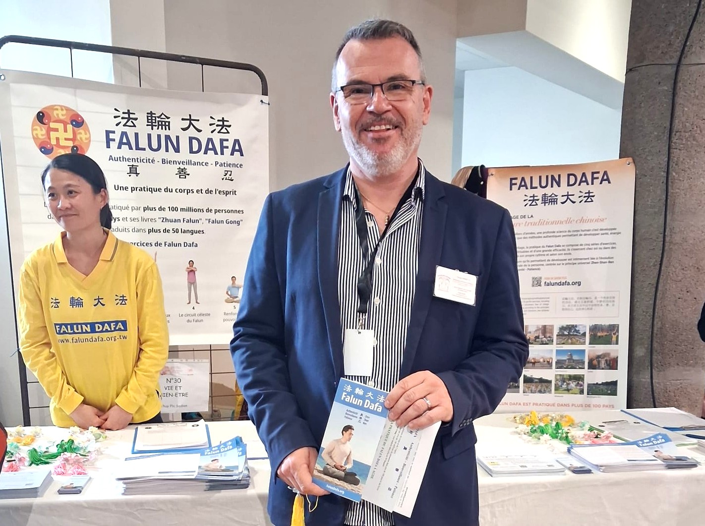 Клод Верне, специалист по рефлексотерапии стоп, после беседы с одним из практикующих захотел больше узнать о Фалунь Дафа и предложил представить эту практику на выставке органических продуктов: «Здоровье не ограничивается только физическим телом – оно включает также эмоциональный и духовный уровни. Фалунь Дафа предлагает альтернативный образ мышления и может привлечь внимание многих людей».