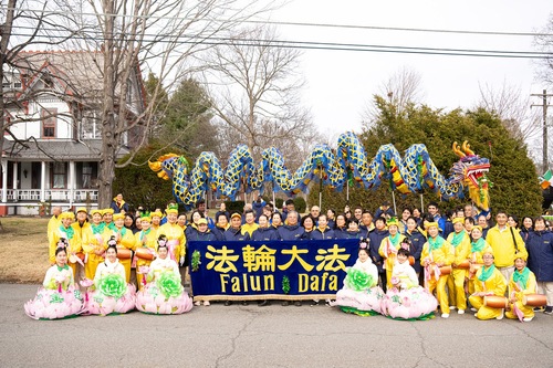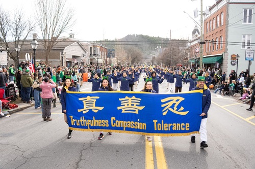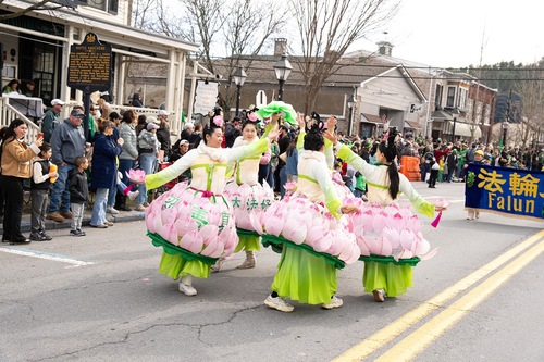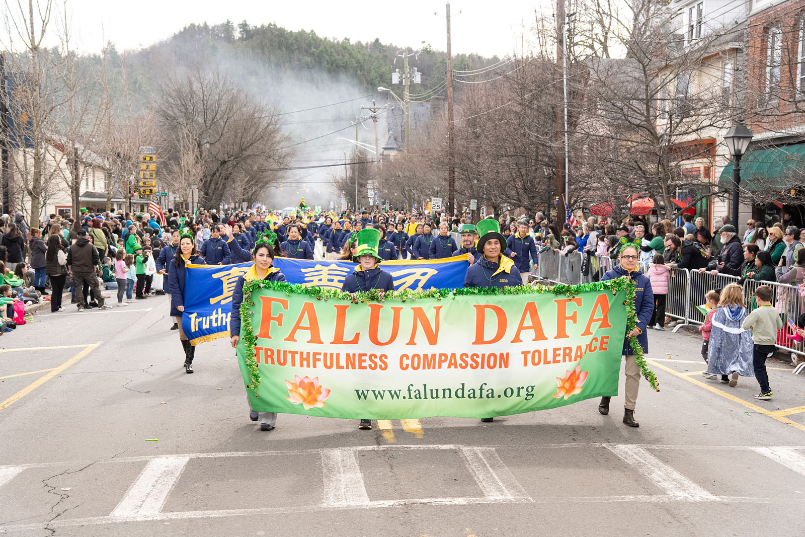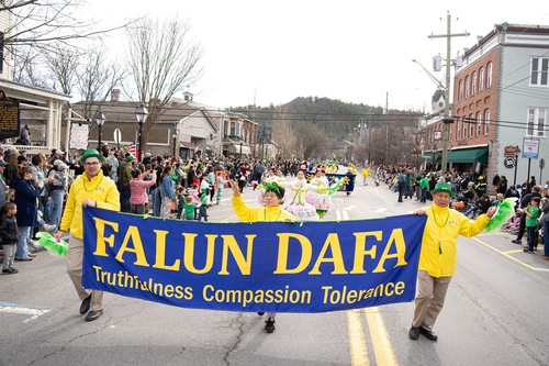 Практикующие Фалунь Дафа принимают участие в параде, посвящённом Дню святого Патрика в Милфорде