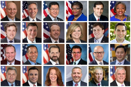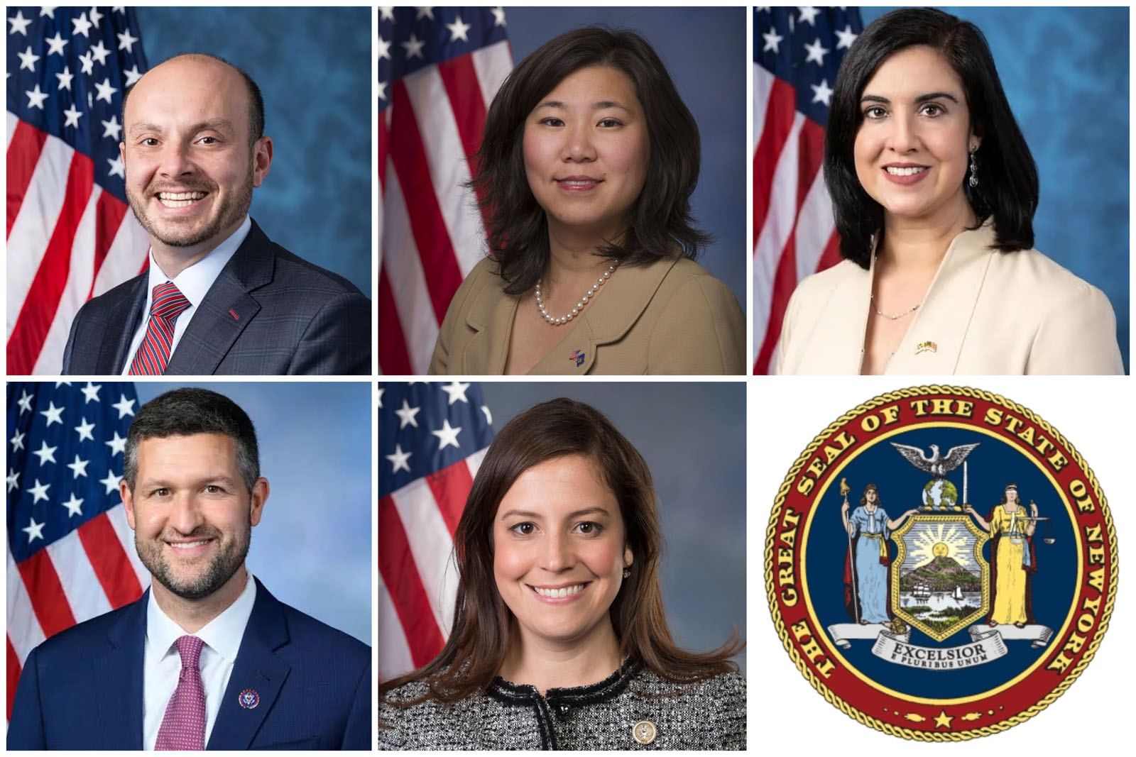 В адрес Shen Yun поступили благодарственные грамоты и поздравительные письма от следующих членов Конгресса США (в порядке избирательных округов, сверху вниз и слева направо): член палаты представителей Эндрю Рид Гарбарино (2-й округ); член палаты представителей Грейс Мэн (6-й округ); член палаты представителей Николь Маллиотакис (11-й округ); член палаты представителей Патрик Райан (18-й округ) и член палаты представителей Элиз Стефаник (21-й округ)