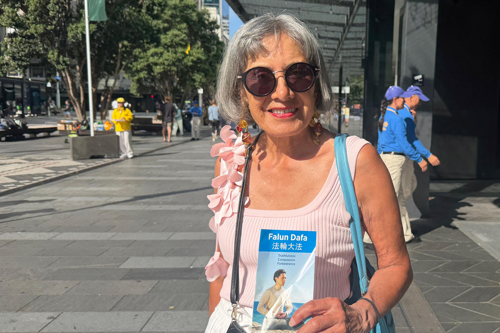 Мария с удовольствием наблюдала за практикующими, выполняющими упражнения. Она живёт недалеко от столицы Новой Зеландии, города Веллингтона, и уже слышала о Фалунь Дафа. «Мне это очень нравится. Я занимаюсь три раза в неделю, и практикующий из Аргентины даёт мне индивидуальные уроки», – сказала она.