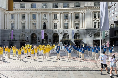 Практикующие выполняют упражнения Фалунь Дафа в Commercial Bay 21 марта 2026 года