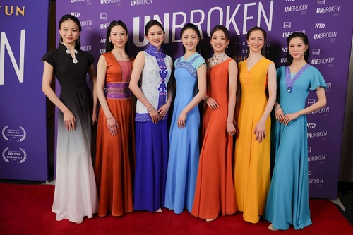 Премьера документального фильма «Несломленные. Нераскрытая история Shen Yun» состоялась в кинотеатре AMC Lincoln Center в Манхэттене 24 марта 2026 года. Семь танцовщиц Shen Yun грациозно прошли по красной дорожке в платьях, дизайн которых был вдохновлён культурой древних династий Китая (фото: Shen Yun)