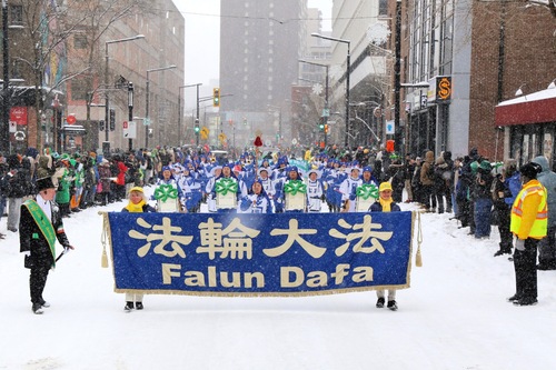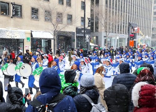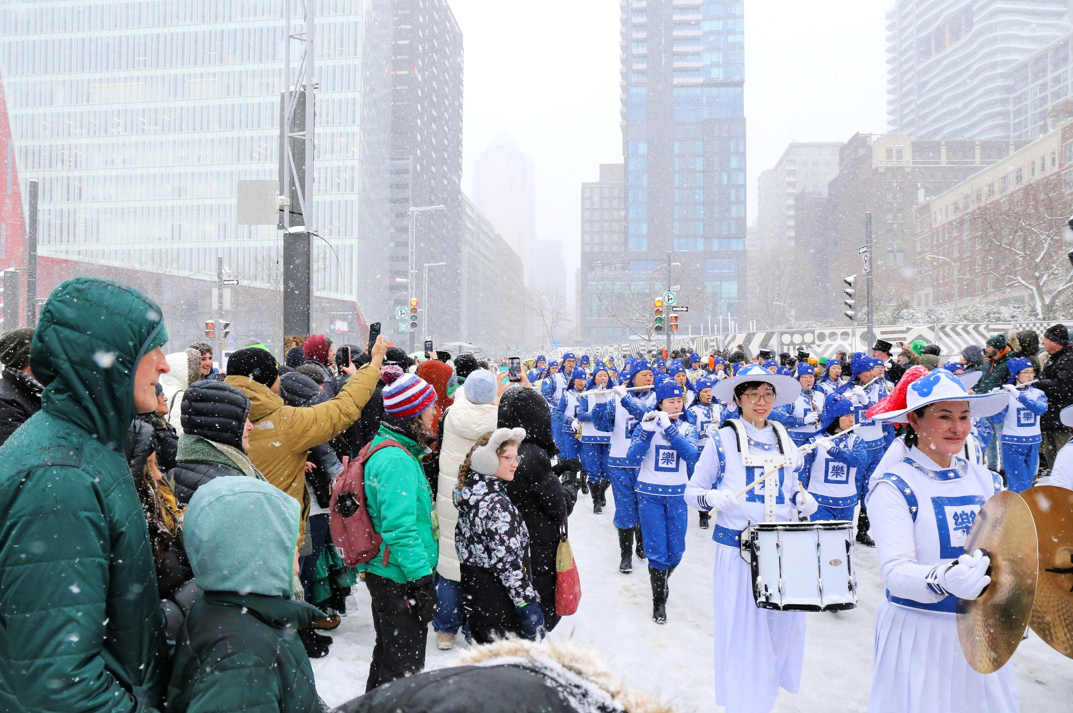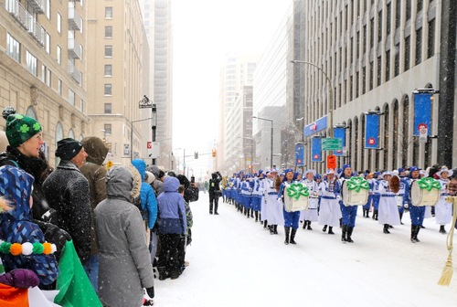 Ни снег, выпавший в день парада, ни холод не ослабили энтузиазма людей. Девяносто две платформы, оркестры и общественные группы начали своё движение от улицы Форт-стрит на восток вдоль бульвара Мезоннёв. Зрители, стоявшие вдоль маршрута парада, приветствовали участников шествия восторженными возгласами и аплодисментами. Часто можно было услышать, как толпа скандировала «Фалунь Дафа», когда мимо проходил оркестр Тянь Го.