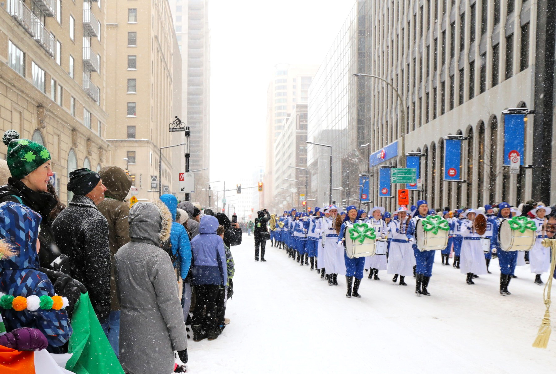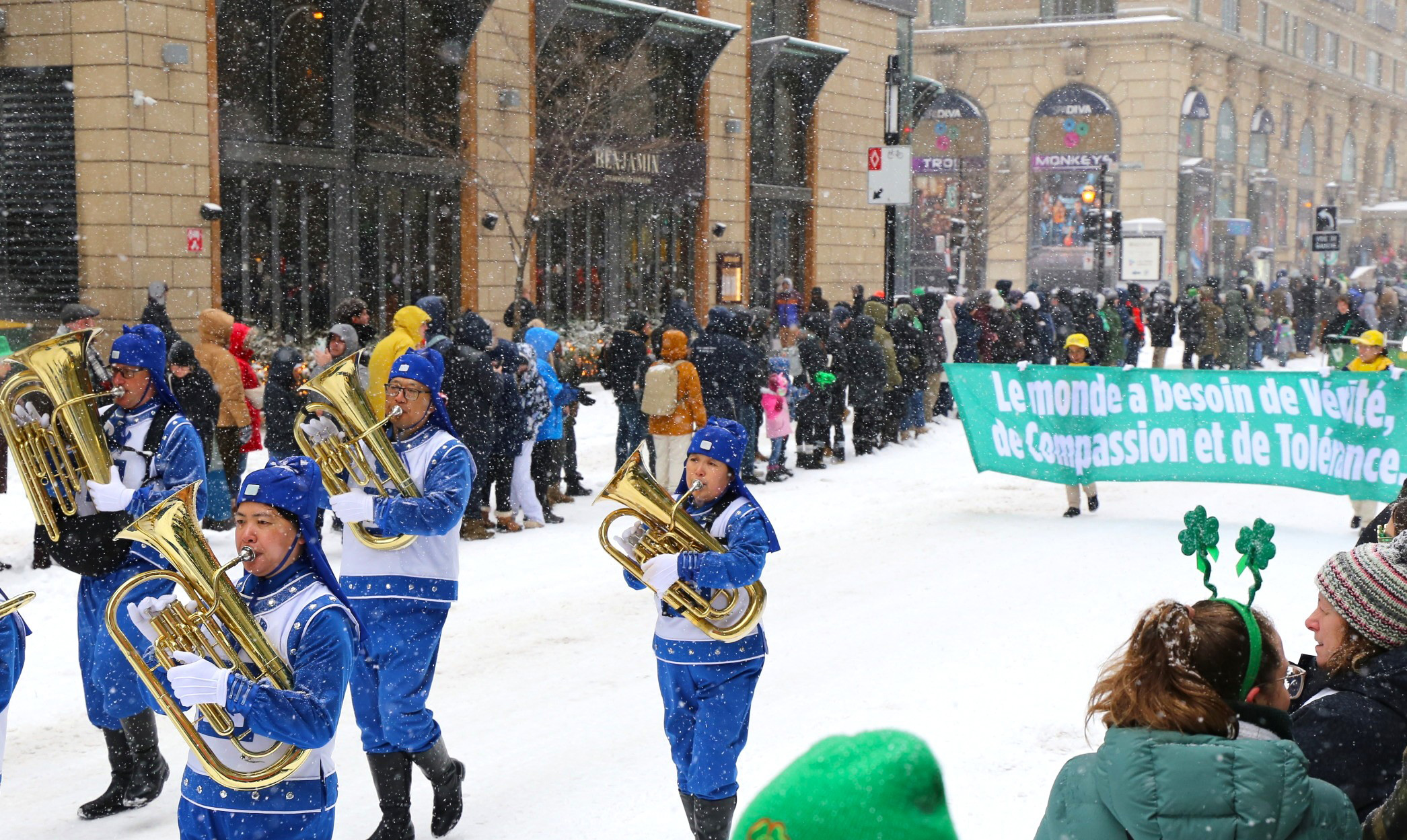 (Minghui.org) Зрители наслаждались выступлением духового оркестра Тянь Го на 201-м параде в честь Дня святого Патрика в Монреале, который состоялся 22 марта 2026 года. Один из зрителей отметил, что передаваемое оркестром послание «Истина, Доброта, Терпение» вдохновляет каждого.