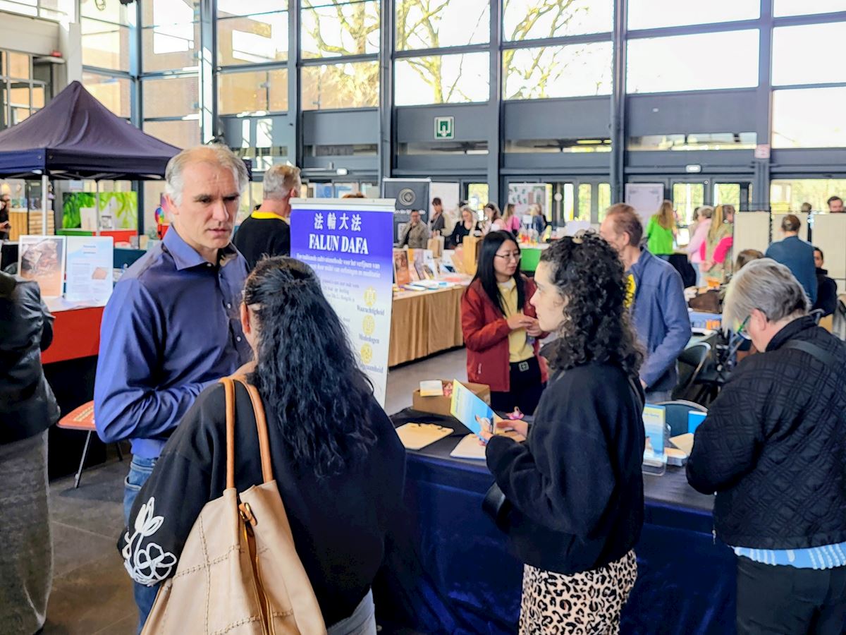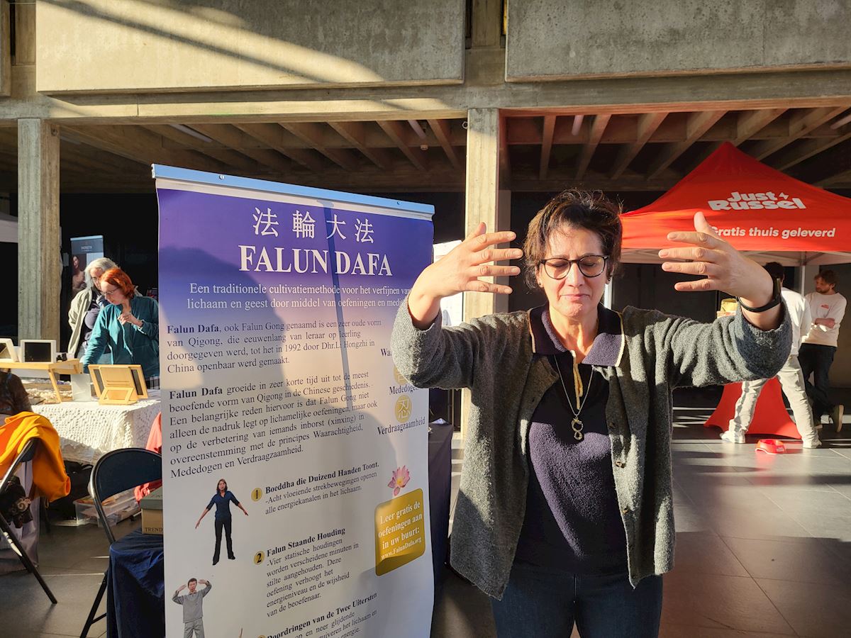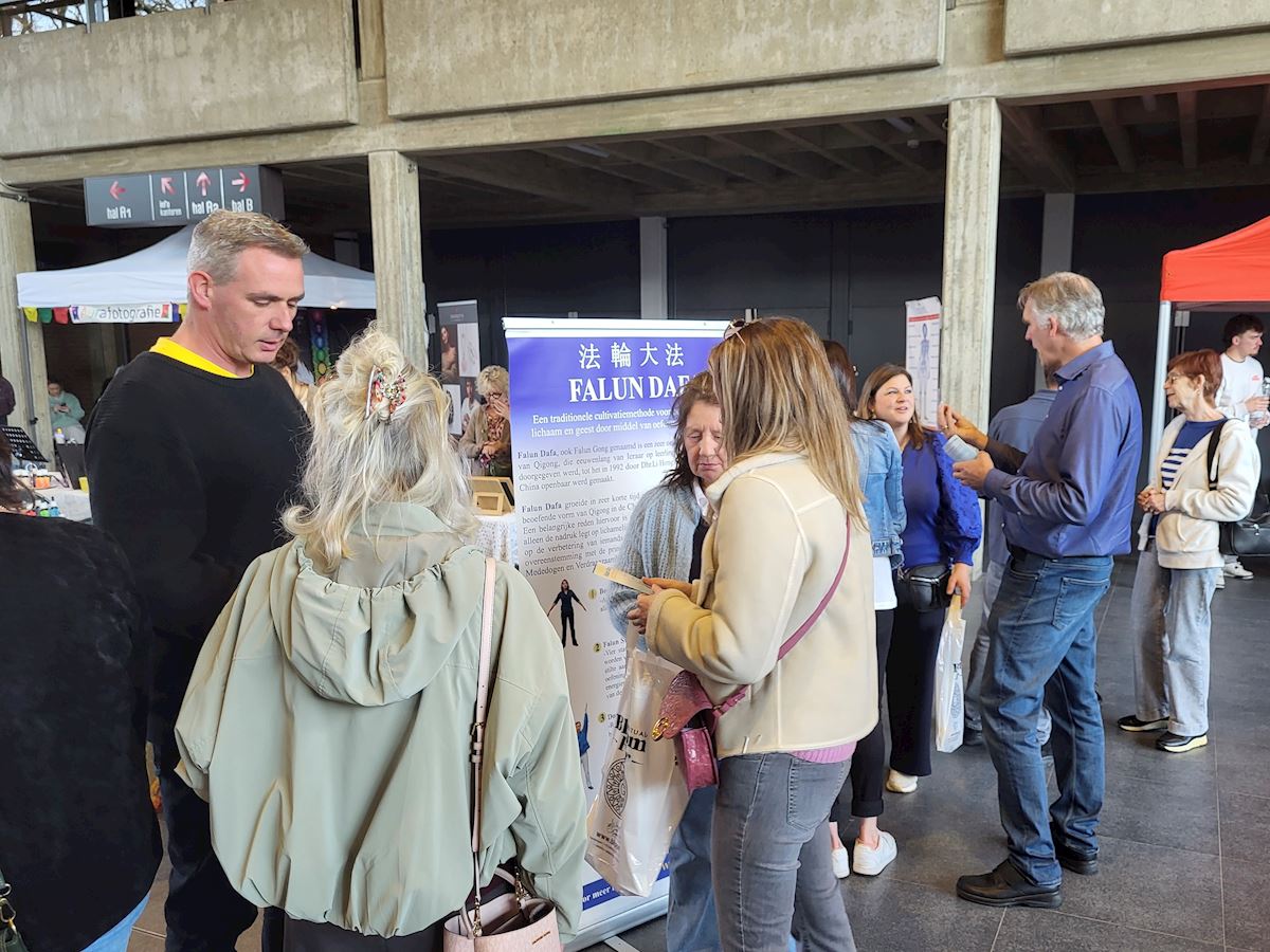 (Minghui.org) Практикующие Фалунь Дафа приняли участие в «Весенней ярмарке духовного пробуждения», проходившей в городе Генк в Бельгии 23 марта 2026 года. Они установили информационный стол, чтобы представить Фалунь Дафа (или Фалуньгун) и привлечь внимание к преследованию последователей этой практики компартией Китая.