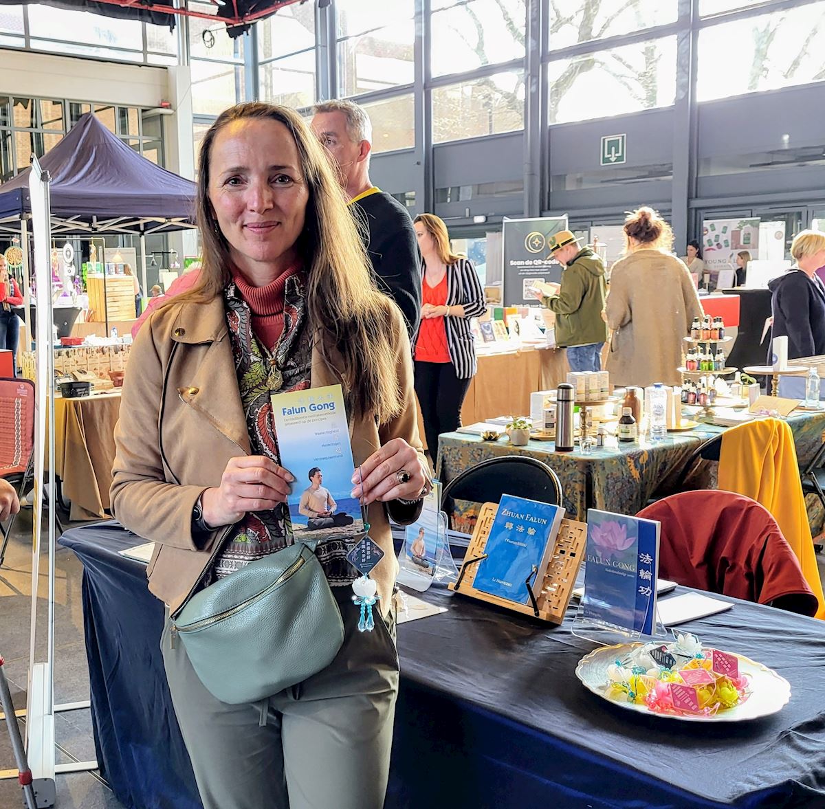 Люди узнают о Фалуньгун на «Весенней ярмарке духовного пробуждения» в Генке в Бельгии