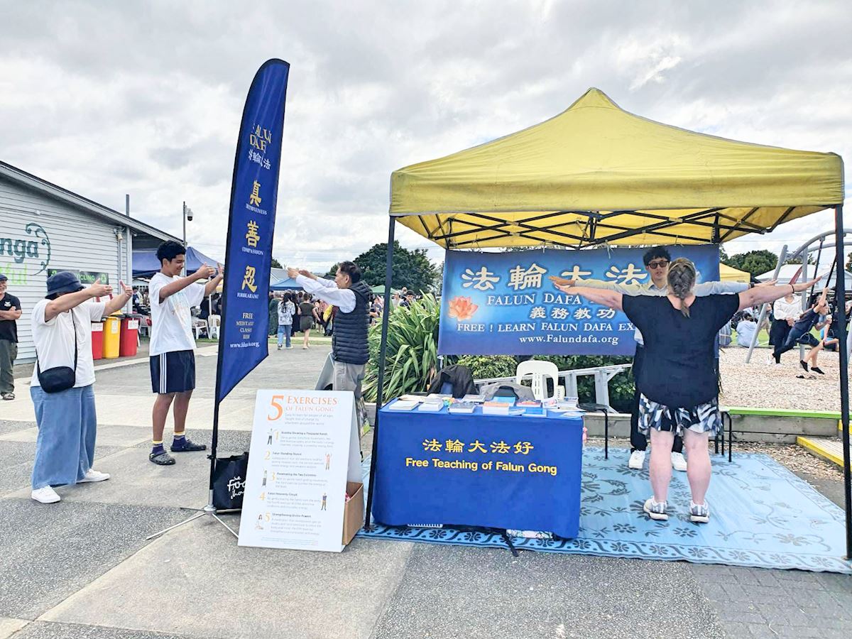 Практикующие установили палатку на фестивале, чтобы познакомить местное сообщество с Фалунь Дафа. Многие посетители фестиваля останавливались, чтобы посмотреть демонстрацию упражнений, а некоторые настолько заинтересовались практикой, что решили выучить упражнения под руководством практикующих. В зале также прошла выставка «Искусство Чжэнь Шань Жэнь (Истина, Доброта, Терпение)», демонстрирующая распространение Фалунь Дафа по всему миру. Представленные произведения искусства привлекли внимание посетителей фестиваля к преследованию последователей Фалунь Дафа компартией Китая (КПК).