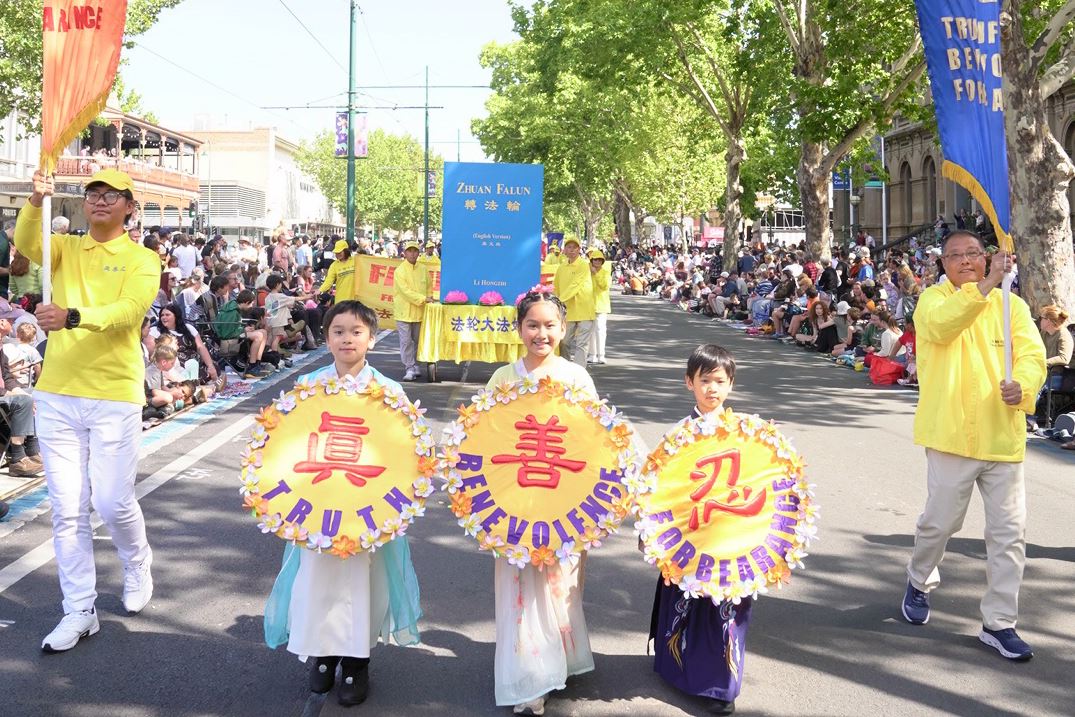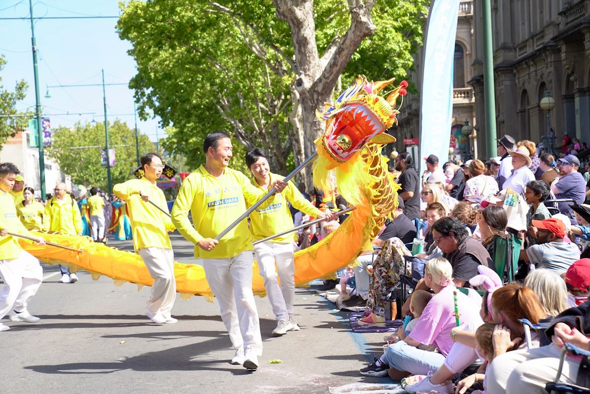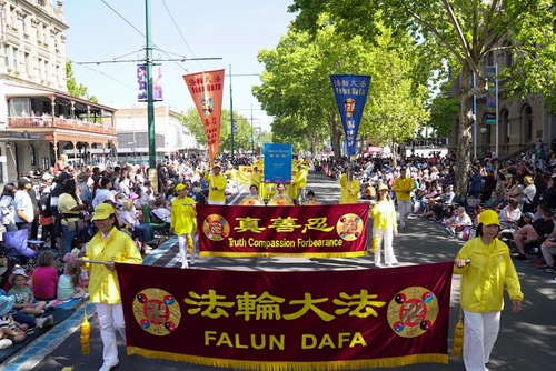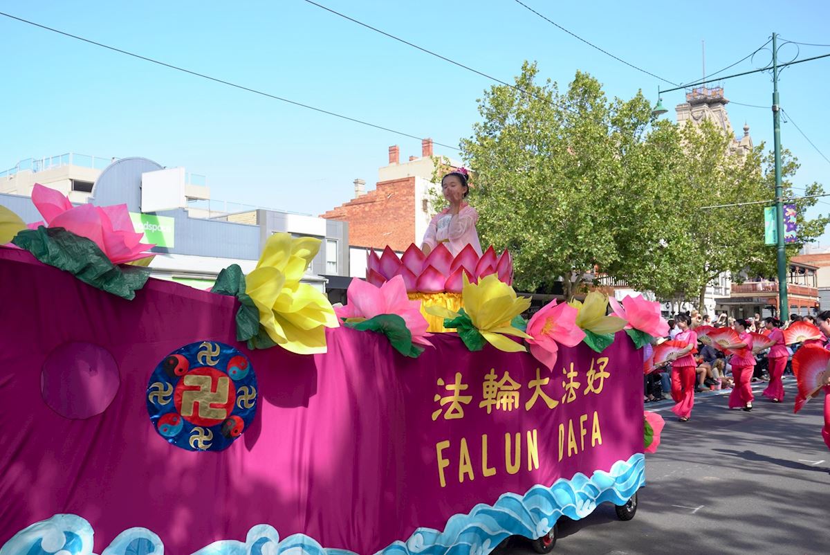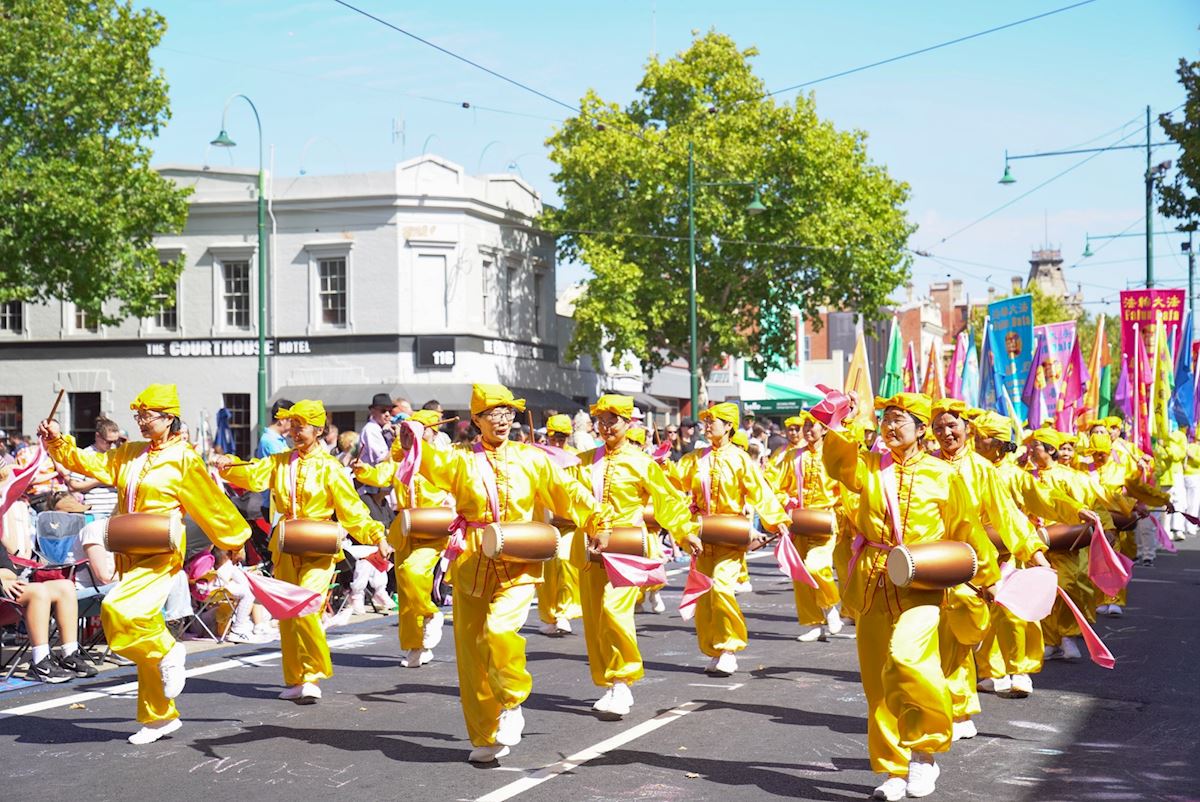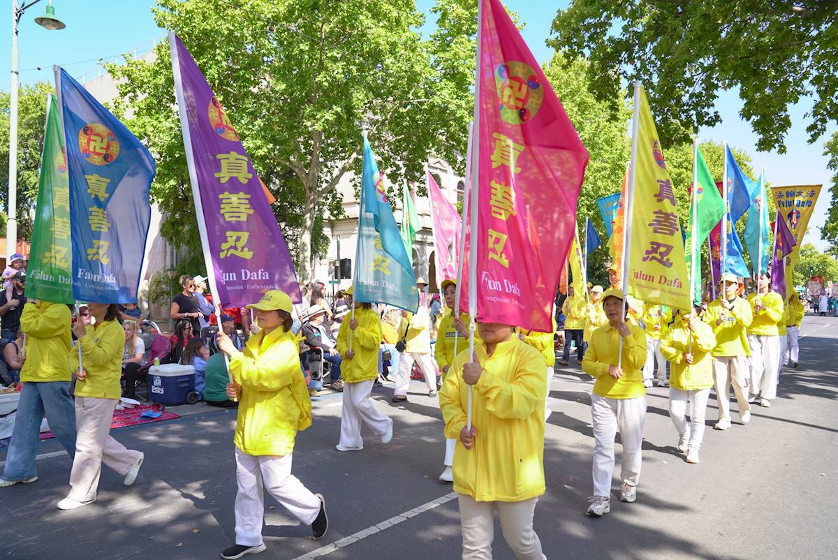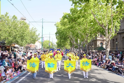 Парад начался в 12:30, и его маршрут составлял 5 км. В шествии приняли участие около 100 практикующих из Мельбурна и Сиднея, сформировавших несколько основных тематических групп. Зрители по обеим сторонам дороги аплодировали проходящим мимо практикующим. Время от времени слышались возгласы: «Фалунь Дафа», «Настоящая, традиционная культура» и «Вы потрясающие».